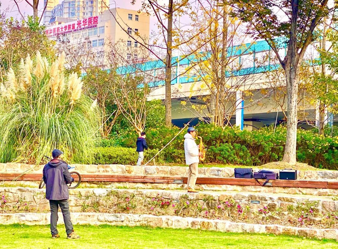 美术馆前面也是一大片绿地,精心修剪的植物和花朵点缀其间。天气好的时候,总有家长带着孩子来运动、看展,玩得不亦乐乎。而爱吹萨克斯的爷叔们,当然不会错过这个好地方。