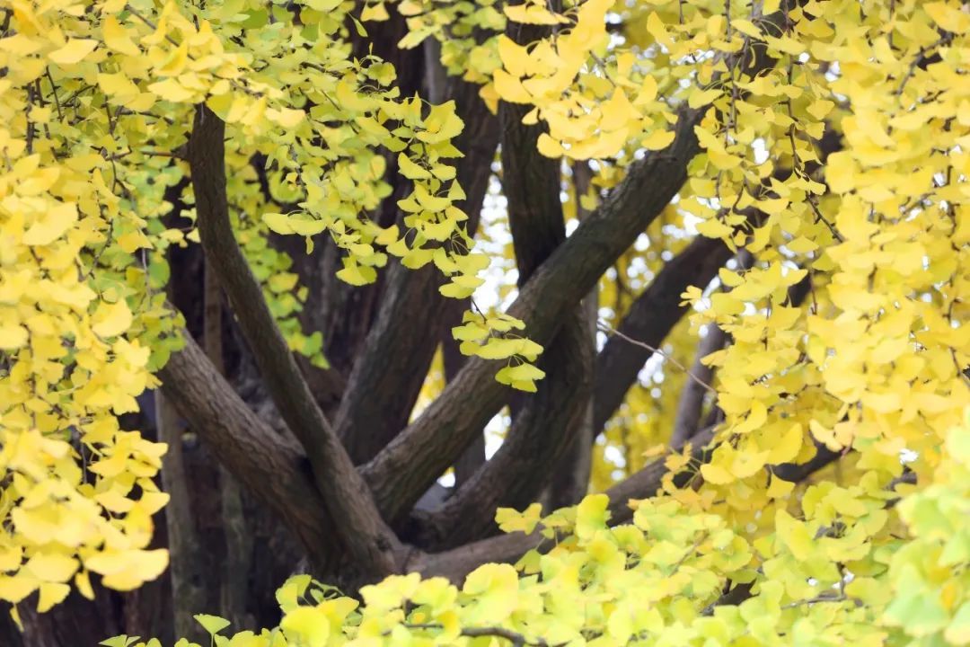 走进古树公园,远远就能看见这棵有着1200多年历史的古树,树叶基本都变成了金黄色。