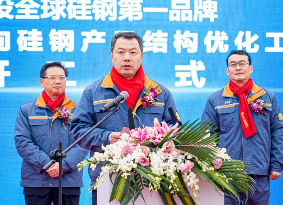 12月8日上午,宝钢股份无取向硅钢产品结构优化项目开工,该项目是全球目前唯一的完全面向新能源汽车行业的高等级无取向硅钢专业生产线。中国宝武总经理、党委副书记胡望明,区委书记陈杰,区委常委、副区长苏平,中国宝武党委常委、宝钢股份党委书记、董事长邹继新,副区长、区公安分局局长黄辉出席仪式。