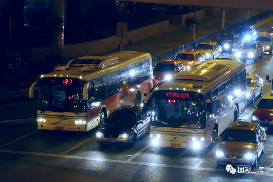 延安东路上行驶的127路和隧道四线(李凯 摄)
