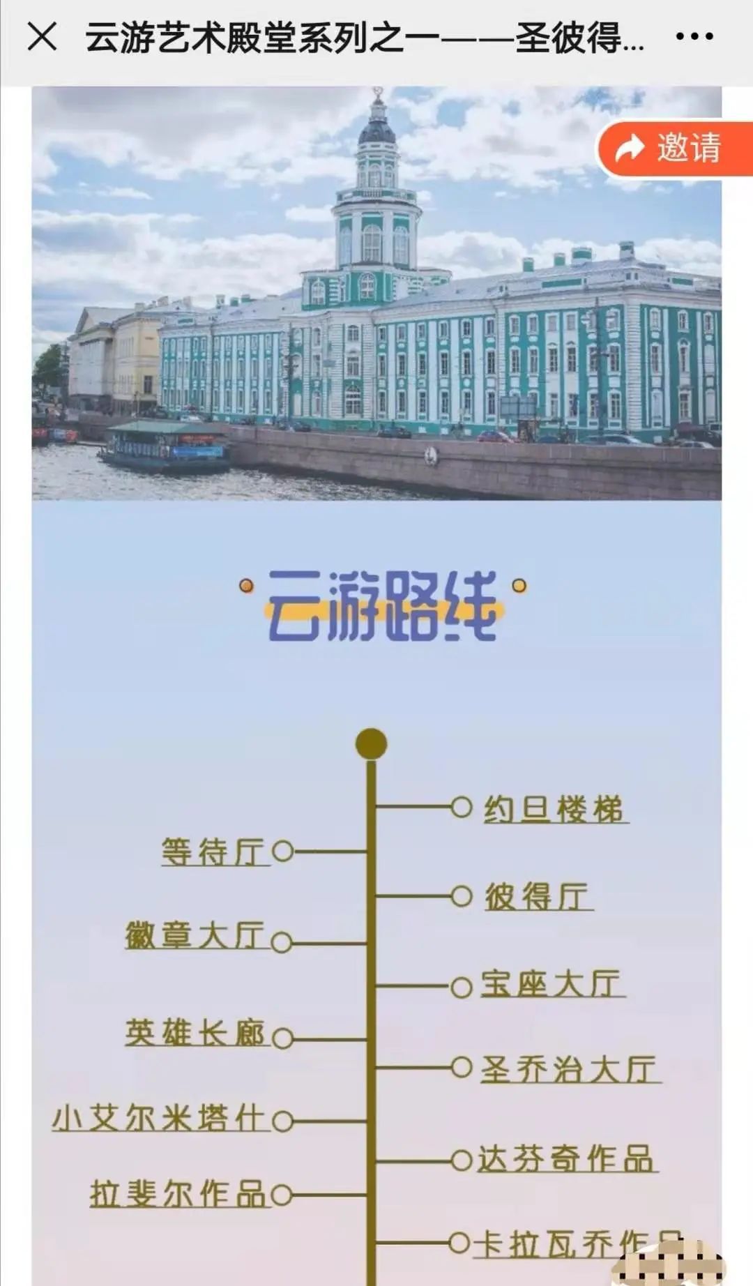 俄罗斯的疫情缓和以后,读书会为大家带来了在俄罗斯圣彼得堡冬宫博物馆的线上直播,带领大家在线上欣赏了这座俄罗斯最著名的博物馆。