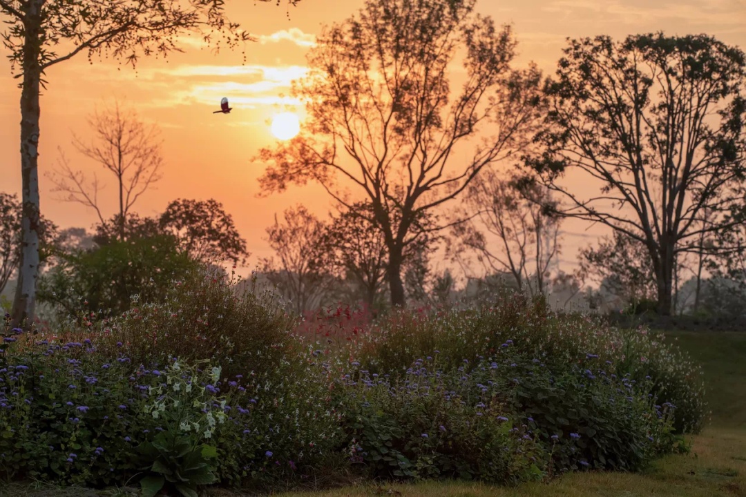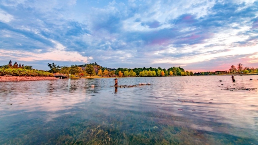 °倒影能和景物形成完整的对称影像,从而让画面具备平衡、稳定的特点。