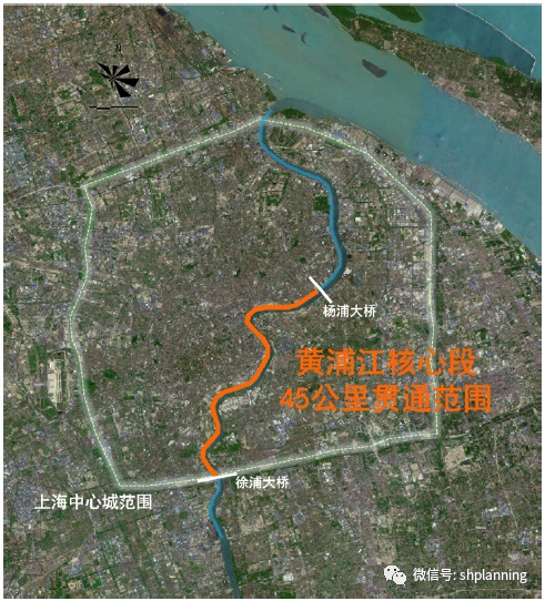黄浦江45公里公共空间贯通范围