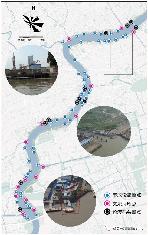 黄浦江沿岸断点分布图