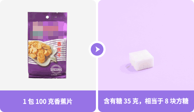 注:香蕉片内的糖分包含水果本身含有的果糖等,未和额外加进去的糖做区分。