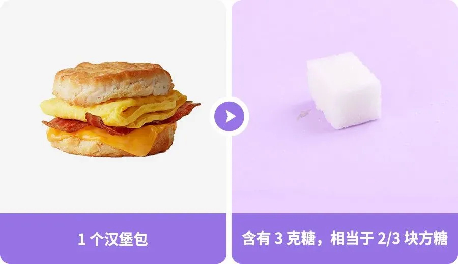 一个早餐鸡蛋培根小汉堡包就有 3 克糖
