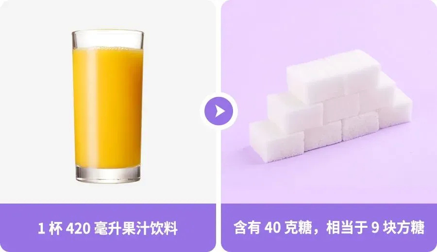 而一瓶果汁饮料有 40 克糖