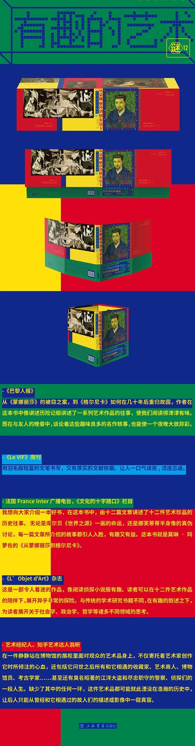这是一部令人着迷的作品,像阅读侦探小说般有趣。读者可以在十二件艺术作品的陪伴下,展开异乎寻常的探险。这本书的作者莫琳•玛萝佐是一位记者及艺术史学家,她选取了十二则“案例”,由此叙述了十二件艺术珍品在历史长河中曾遭遇的纠葛往事。