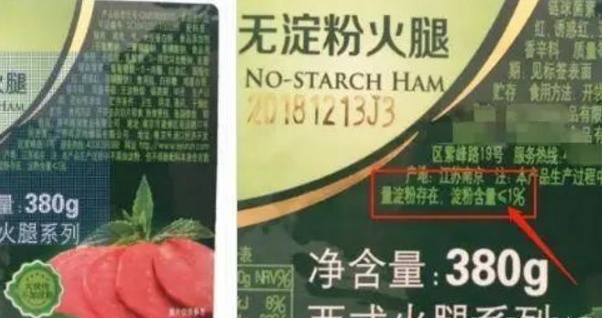 淀粉含量≤1%,代表无淀粉级火腿肠;