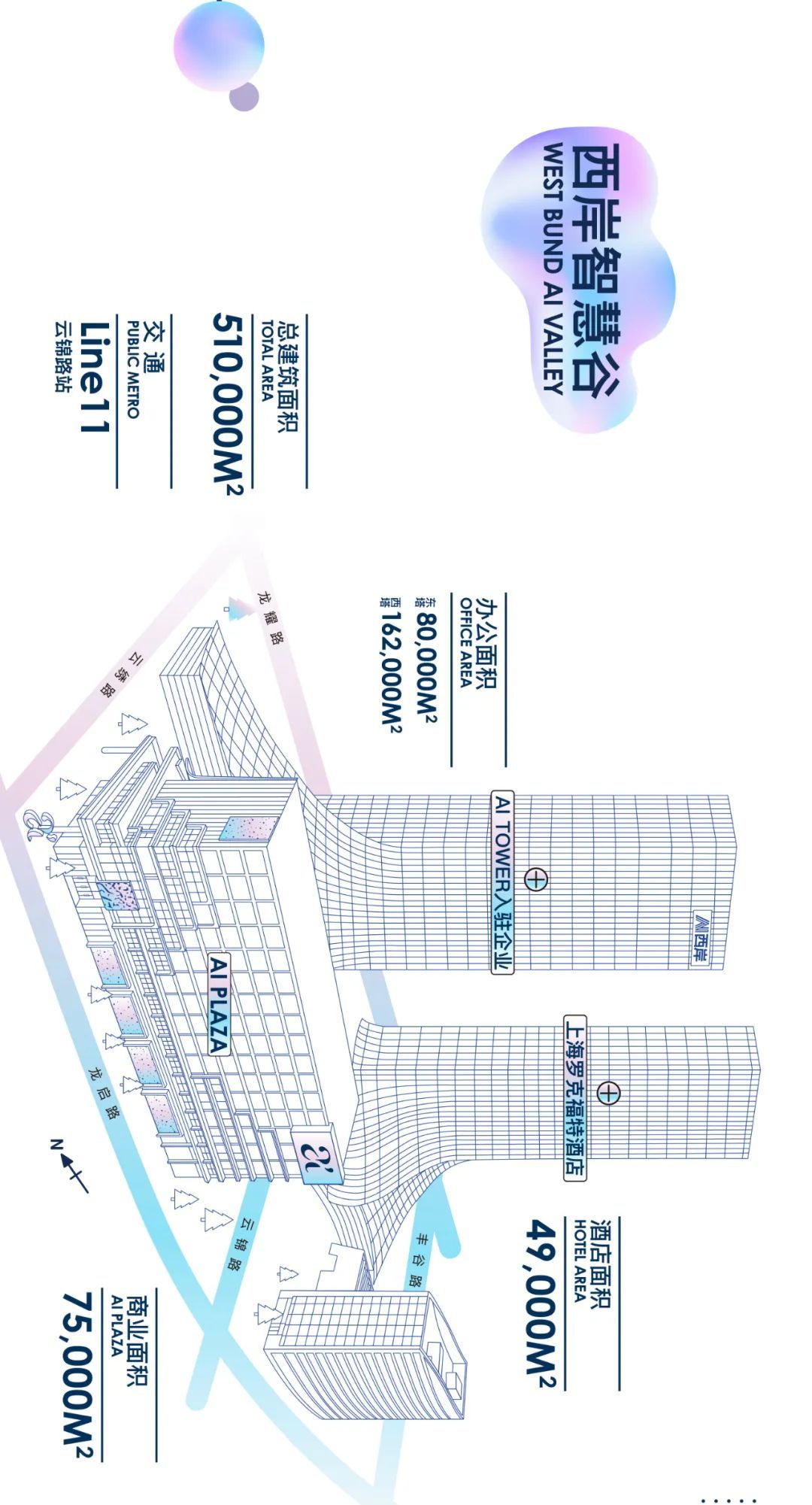 “AI Tower西岸智塔”、“Art Tower西岸艺岛”与“AI PLAZA西岸凤巢”——以塔聚才、以岛荟艺、以巢筑商,特色分明的三大建筑体打造成一个集人工智能产业地标、上海新文化地标、创新商业地标为一体的超强地标组合,形成办公+艺术平台+商业的闭环生态圈,将助推西岸不断向“全球城市的卓越水岸”迈进。