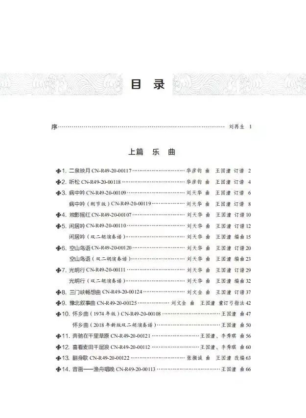 书中丰富而严谨的乐谱标记给人留下深刻印象,既有常用的音乐表达术语,包括弓法、指法、力度、强弱、滑音、装饰音等符号,又配有文字的辅助提示,精微细致,详尽得当。王老师还特意为每首乐曲撰写创作背景、作品内容、风格特色,以及演奏处理的方法与技法。对于乐谱的认知是我们学习音乐作品的关键,而保存、传播音乐是乐谱最重要的价值,王老师这样的做法除了体现专业的音乐素养和严谨的治学态度,亦反映出普及音乐、顾及大众的良苦用心。正如他在后记中说到:“力求做到详尽而通俗易懂,尽可能把自己几十年积累的演奏经验,清晰地告诉广大读者。” 他说最有意义的事情是有生之年,把他几十年在二胡上积累的经验传授给后人,其中有些传统名曲是二胡先辈们传授给他之后,他广泛吸收众人之长,经长期研究和反复推敲形成属于自己的演奏风格,因此在整理出版时尽量详细标注,尽可能地做到如见其谱,如闻其声。他为每首乐曲录制示范演奏的音频资料,这样音频+乐谱+文字三管齐下的立体呈现模式,仿佛像一份营养丰富的饕餮大餐,相信一定能够满足二胡学习者的味蕾。