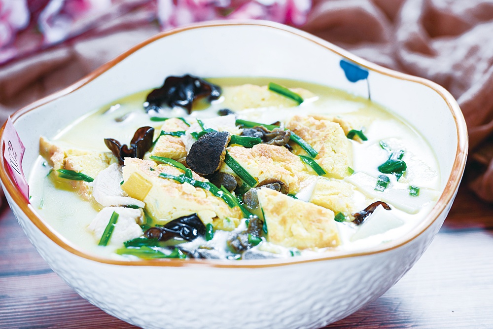 极简的烹饪能凸显食材最原本的味道,但是大丰向来不缺心灵手巧的大师。伴随着奇妙的想象,石磺与鸡蛋在这里相互碰撞交融,拌以蛋糕的香鲜软糯,土参调和入味;汤白糕香,参鲜合一,听着就让人垂涎欲滴!