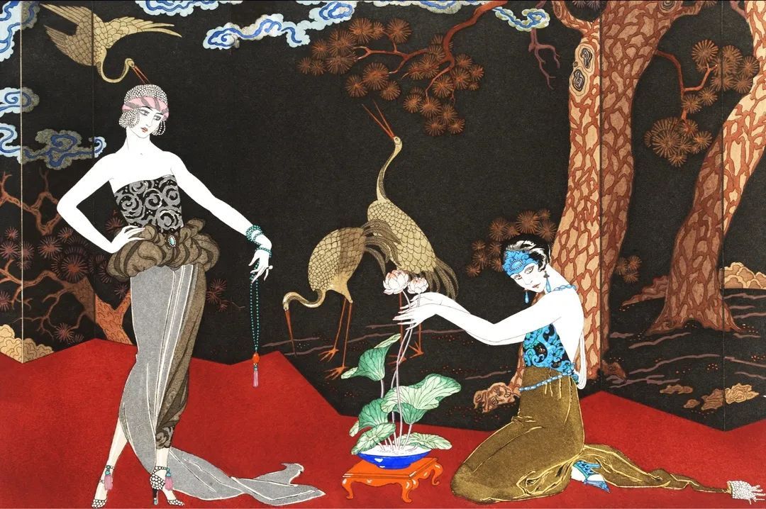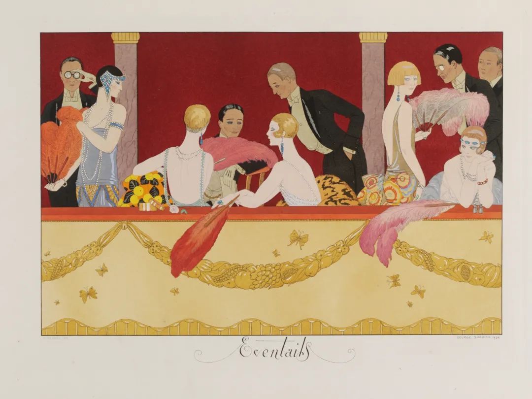 来自V&A博物馆收藏,20世纪法国最伟大的插画大师之一乔治•巴比耶的作品,巴比耶巧妙的融合了艺术、时尚与生活,将法式时尚浪漫呈现于画作之上,如今我们也如20世纪的法国人那般,希望以仪式感的形式将艺术融入于生活中。