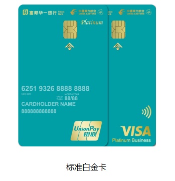 此次上线的富邦华一东航联名信用卡分为“标准白金卡”和“富逸白金卡”。两款卡面分别以富邦华一银行的logo主题色与典雅禅意蓝为主色调,设计采用极简风格,融入象征“出发”的箭头元素,彰显本次联名信用卡的内在理念:“新旅程,前所未见”,寓意开启台胞在大陆的崭新生活。