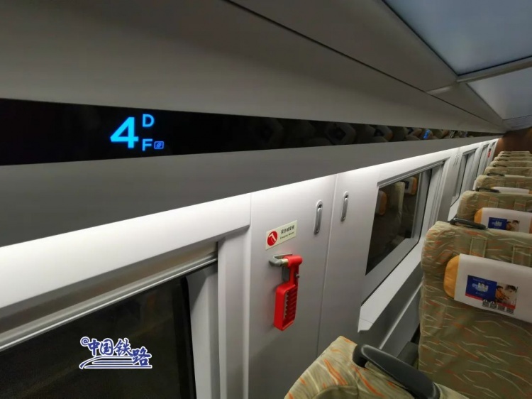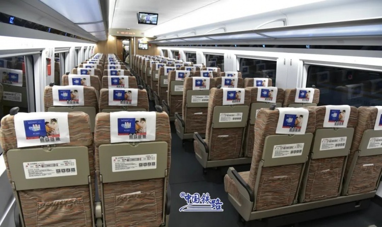 CR300BF型复兴号动车组全列采用8辆编组,总定员613人,其中一等座48个席位,二等座565个席位。