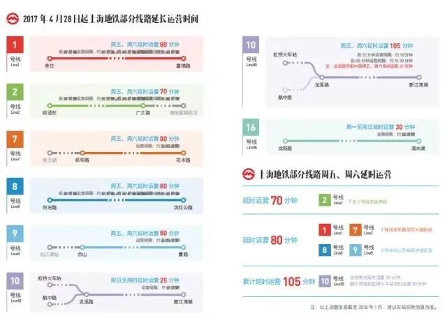2017年4月28日起,上海地铁1、2、7、8、9、10号线六条线路周末延时运营到零点,为大批“都市夜归人”带来了便捷,同时进一步拉动城市夜经济,使更多市民乘客感受到了上海的温度以及地铁的人性化和精细化服务。