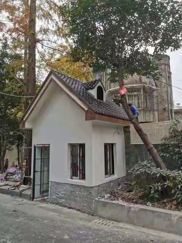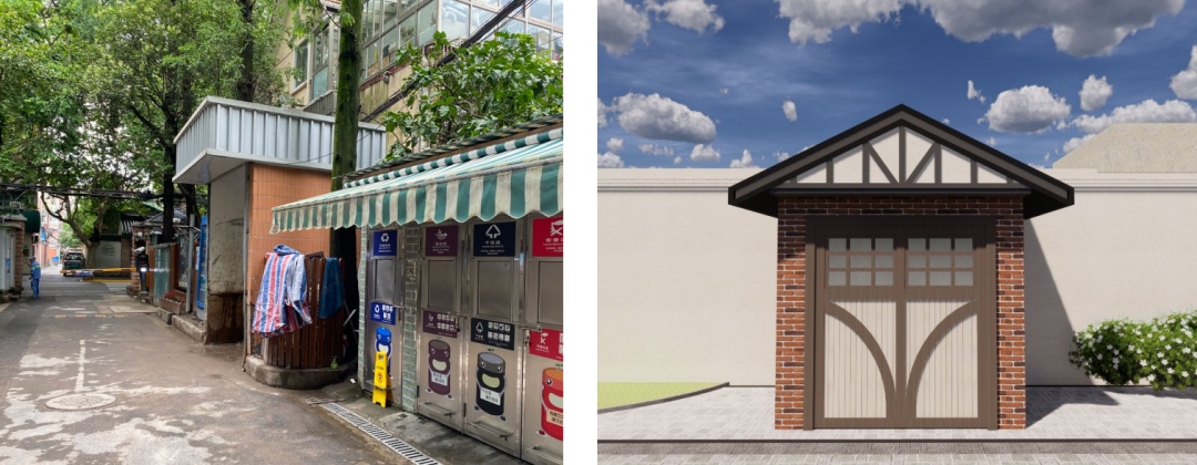 建筑外立面:门卫亭和垃圾箱房进行饰面改造,其他建筑均以涂料翻新的方式进行更新。
