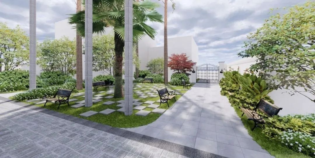 墙面:对保护建筑的围墙高度和风格进行控制,非保护建筑的围墙整体以简洁的方式进行更新设计。