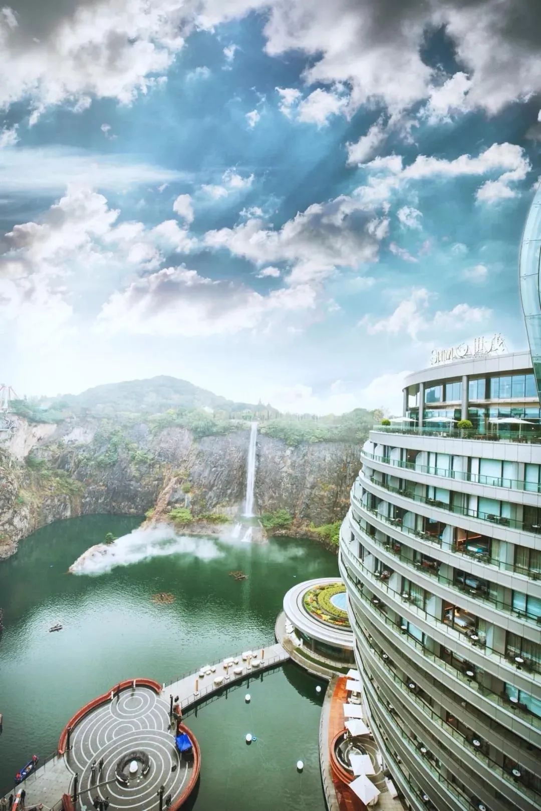 上海佘山世茂洲际酒店,又称“深坑酒店”!这座“挂在”坑壁上的神奇建筑,打造了整整12年,一经面市就火遍全球,并与迪拜帆船酒店同时入选世界十大建筑奇迹中的两大酒店类奇迹,被誉为“世界建筑奇迹”。