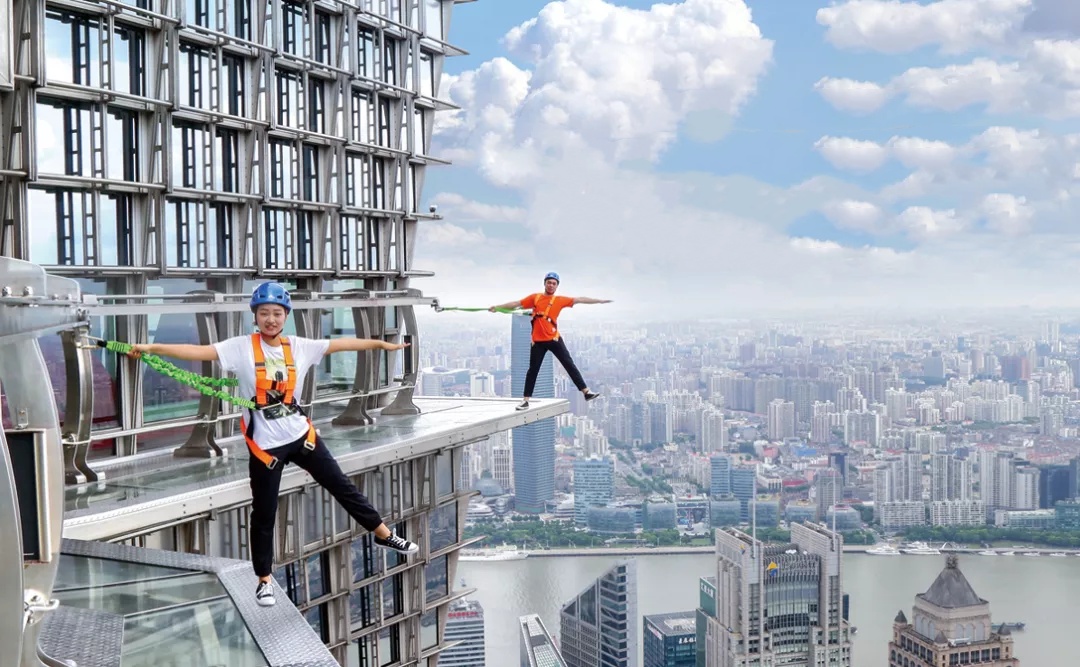 上海金茂大厦88层观光厅有一个非常小众的玻璃步道:全长60米、宽1.2米、高度340.6米,是目前全球最高的摩天大楼户外全透明、无护栏空中步道!维密天使Sanne Vloet、张艺兴等都来打过卡。站在这里,仿佛有一种掌控世界的快感!