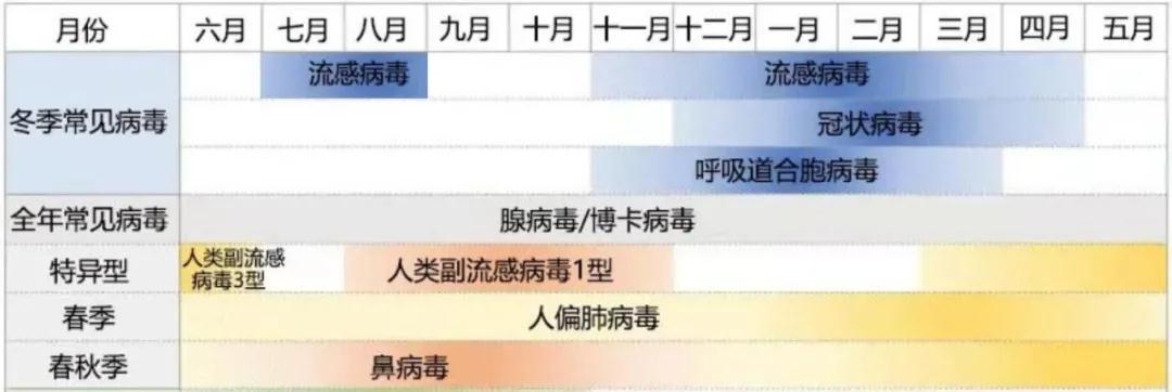 呼吸道病毒流行季节示意图