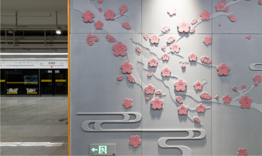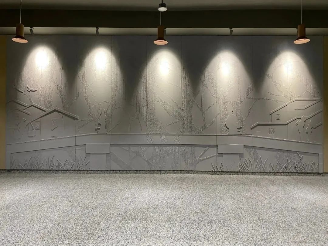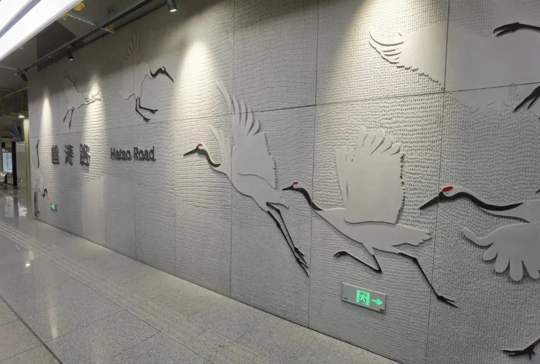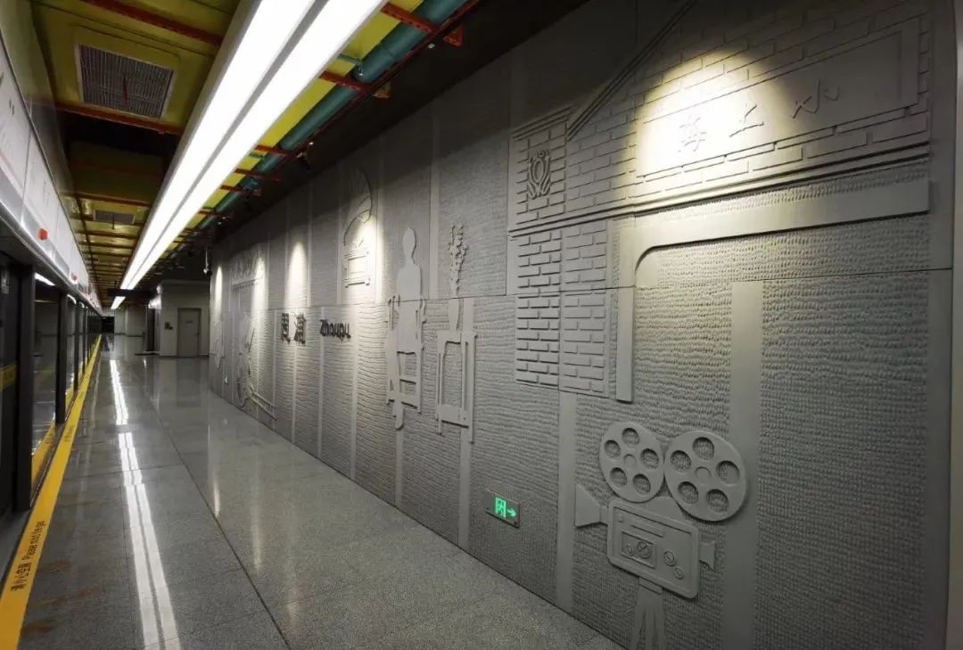 在建设设计过程中,不仅把站名墙作为交通引导标识,也让其承载更多的历史感。设计者通过查资料、走访当地,挖掘每一个地区独特的历史文化,从大量的信息中提取出有价值的元素,融入站名墙之中。在选材上选择预制艺术水泥板,通过追溯历史印迹、提炼文化内涵等形式对站名墙进行了艺术化设计,生动形象地反映车站周边的历史底蕴与人文特色。