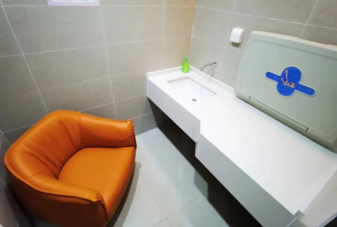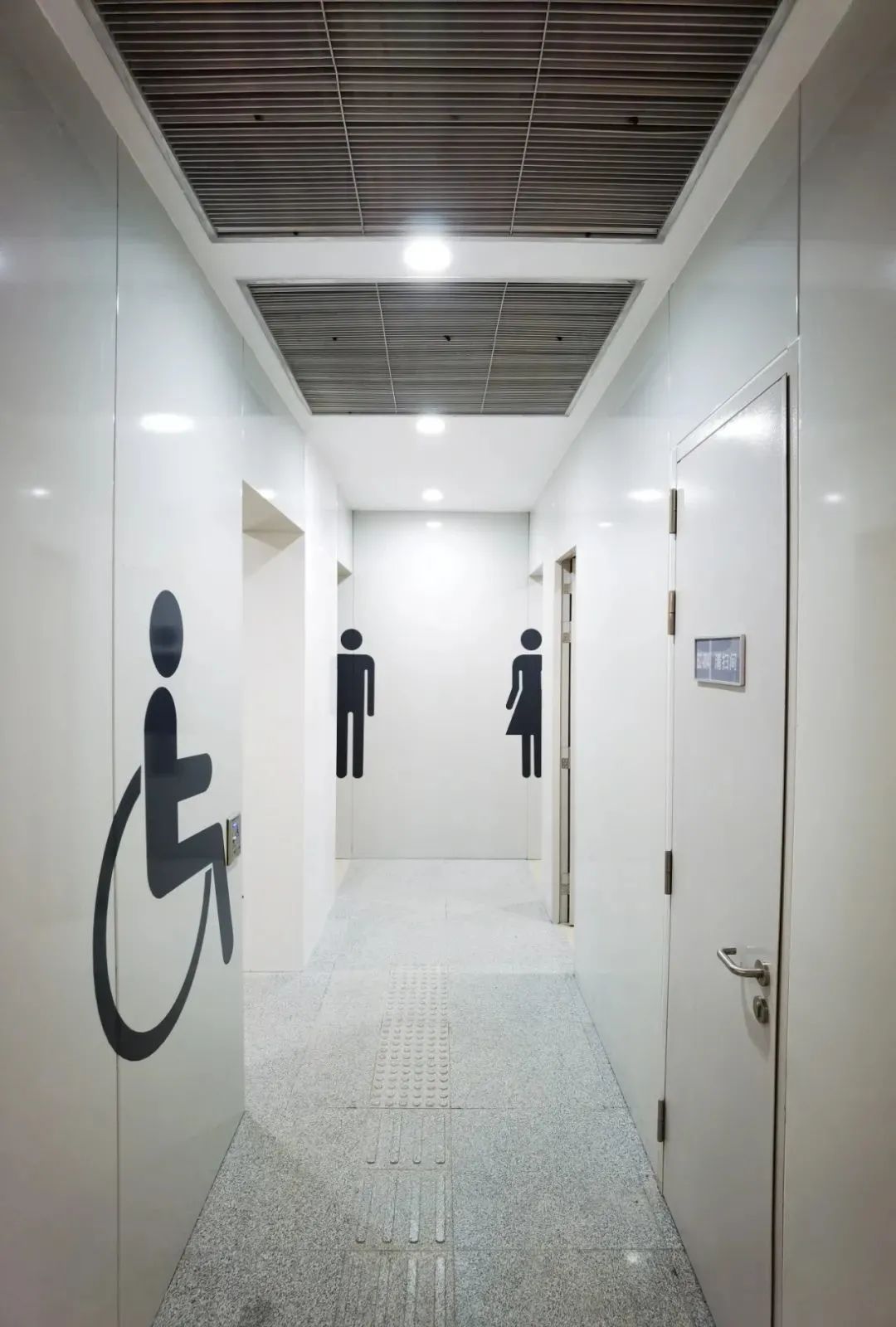 公共卫生间的设计充分考虑了乘客的需求,合理布置,方便使用,还设置了物品挂钩、手机搁置台等,扩大无障碍卫生间面积,增加儿童设施等。