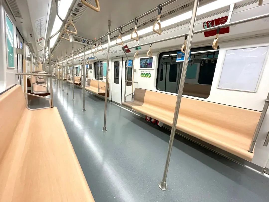 配置了可视化的紧急对讲系统和交互式门解锁功能,使控制中心可清晰看到对讲乘客情况,更精准地指导乘客;升级了通风系统,增大了出风范围,使乘客能够体验到无风感、无温差的舒适乘坐环境;车厢大面积采用木纹内饰,彰显温度地铁的人文关怀。
