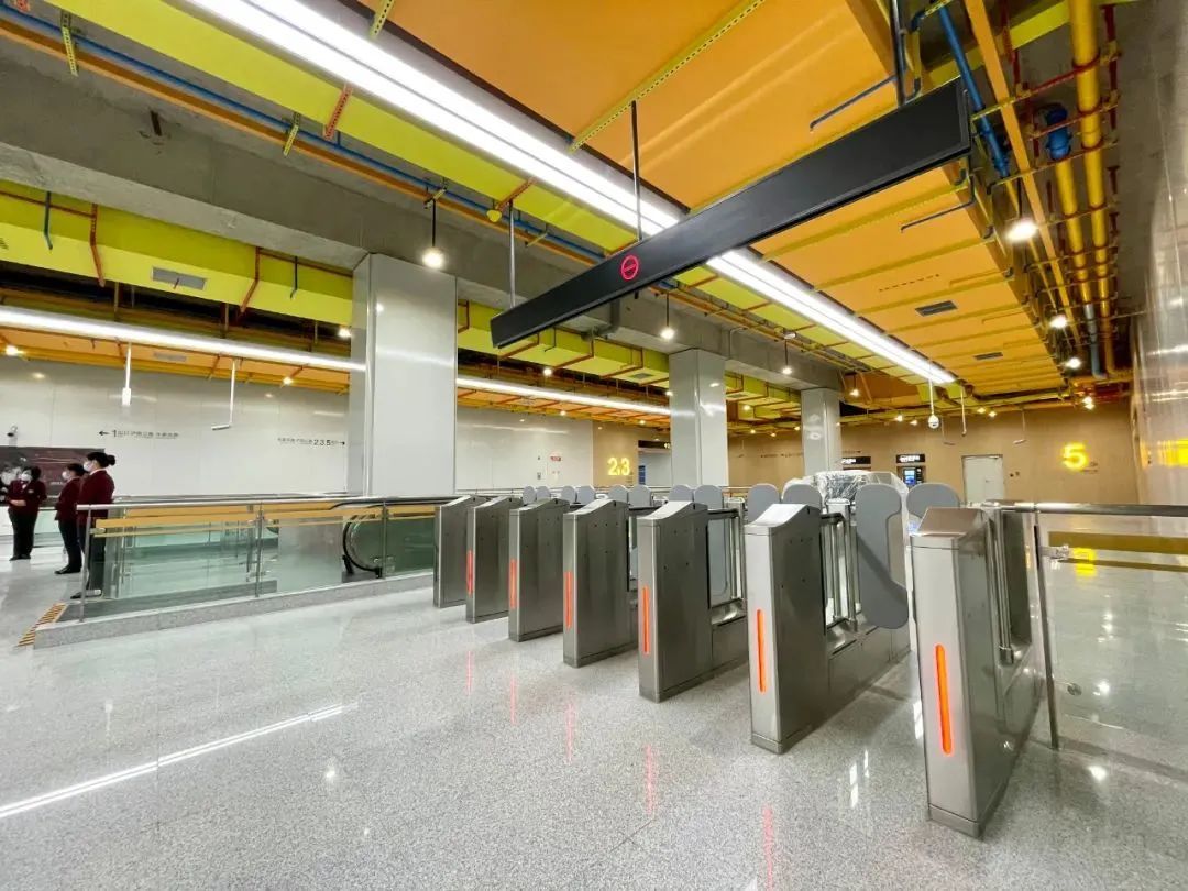 车站公共区设置了诸多人性化设施,除常规的垂直电梯、盲道外,闸机统一采用门式,方便婴儿车及携带大行李乘客通过。