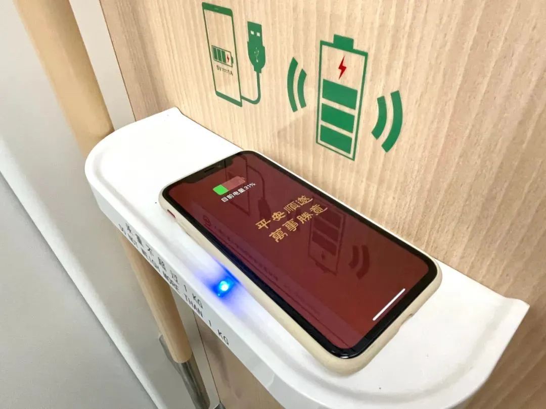 车厢内配备智能无线充电平台,方便乘客的手机进行无线充电。