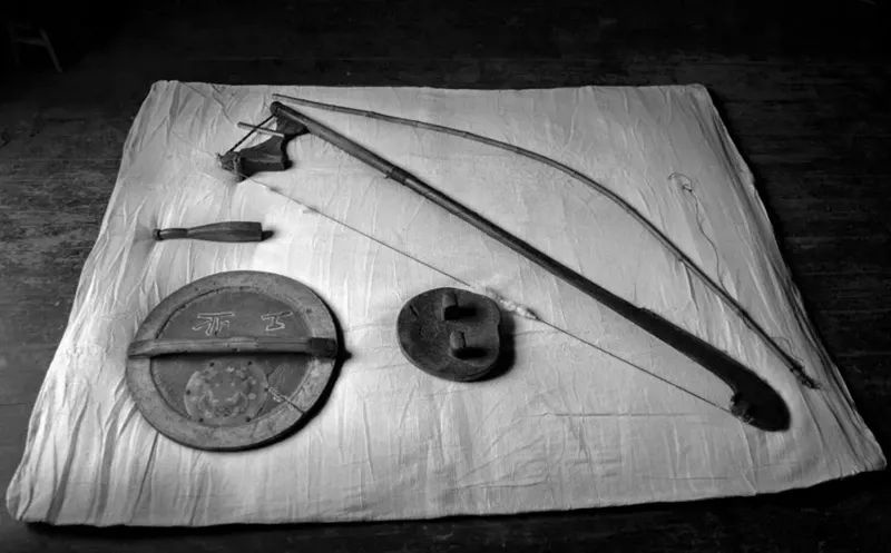 弹棉花工匠都有一把专门用来弹棉花的“弓”,这是最基本的工具,通过用木榔头敲击弓上的弦,来沾取棉花,我们听到的弹棉花的标志性声响就是由弓发出来的。