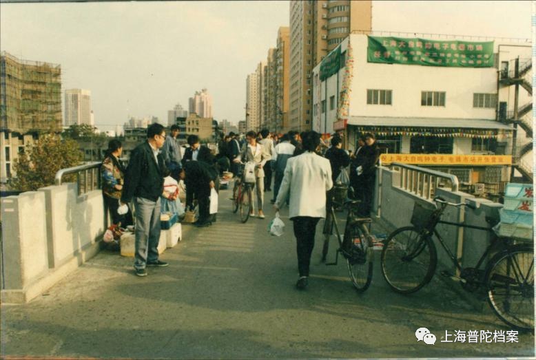 上世纪90年代,西康路桥上的小摊贩和熙熙攘攘的人群