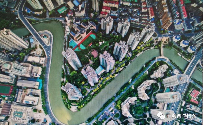 2016年,西康路桥旁半岛花园鸟瞰,原日商内外棉三、四厂厂址,1919年“六五”大罢工发生地
