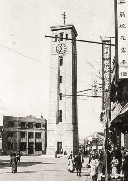 解放前大自鸣钟旧照,位于今西康路长寿路口,1959年国庆前拆除