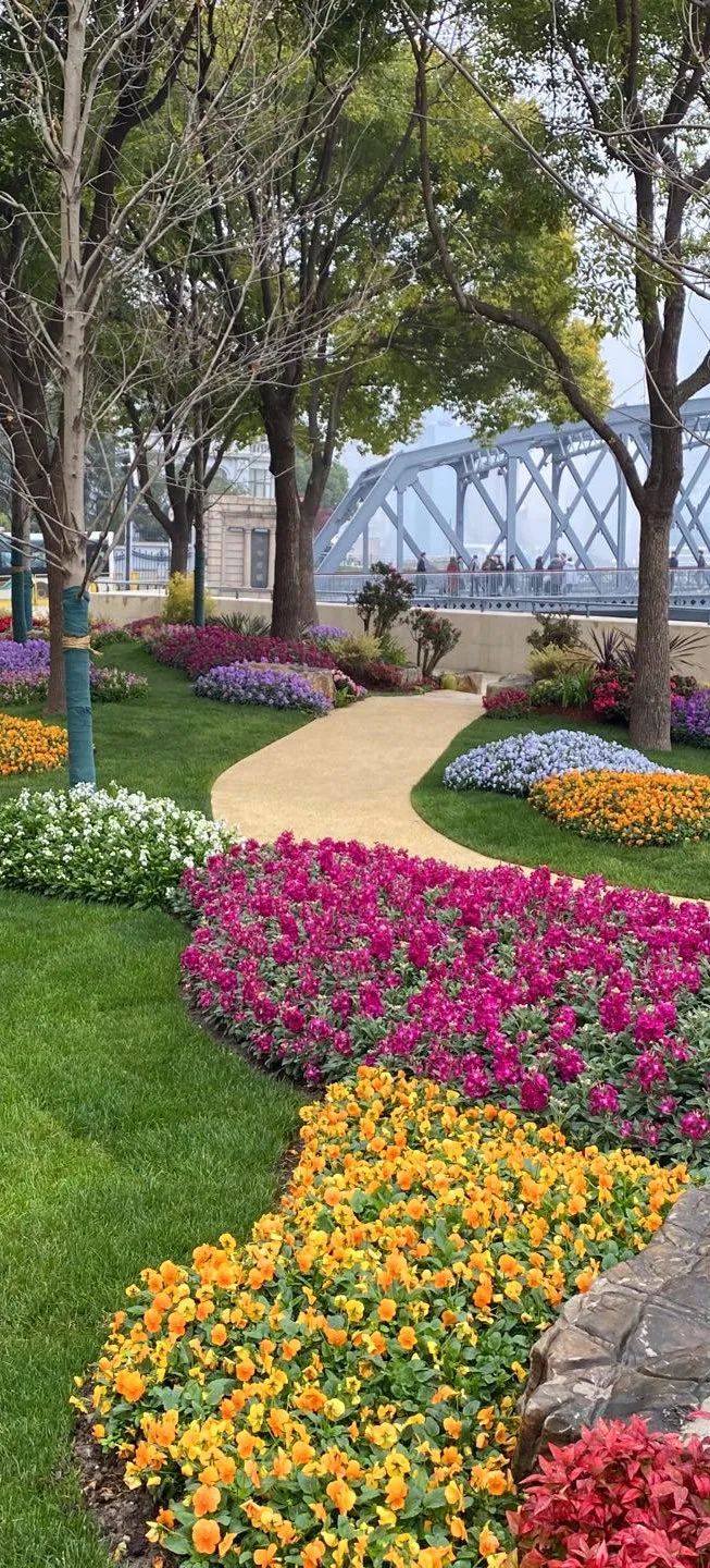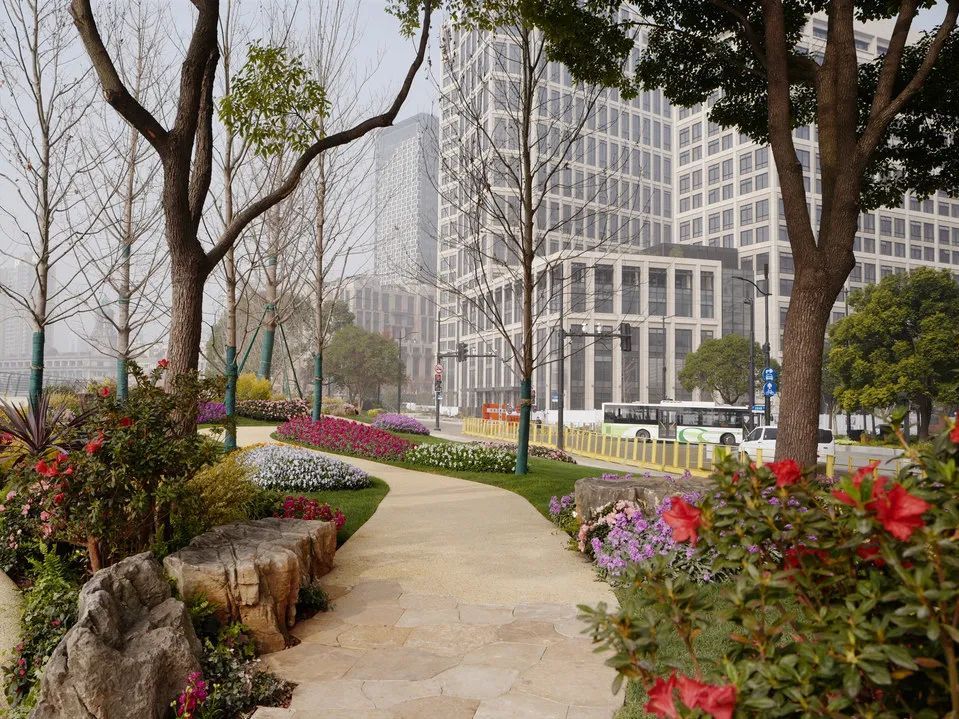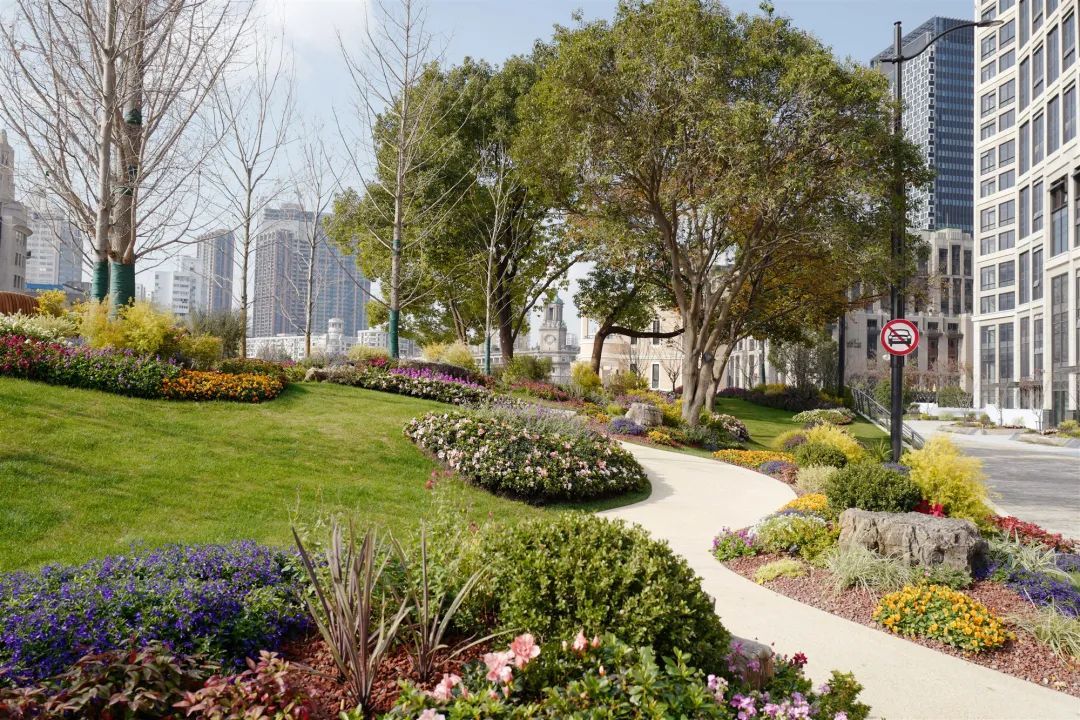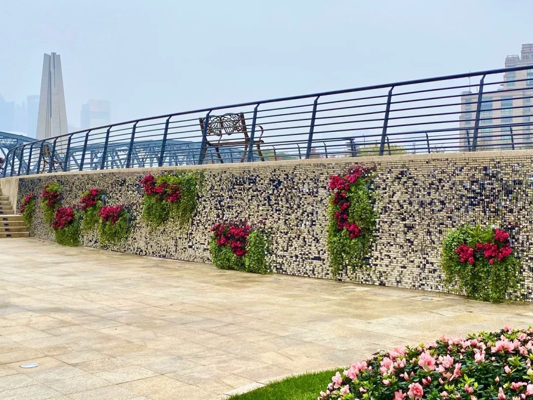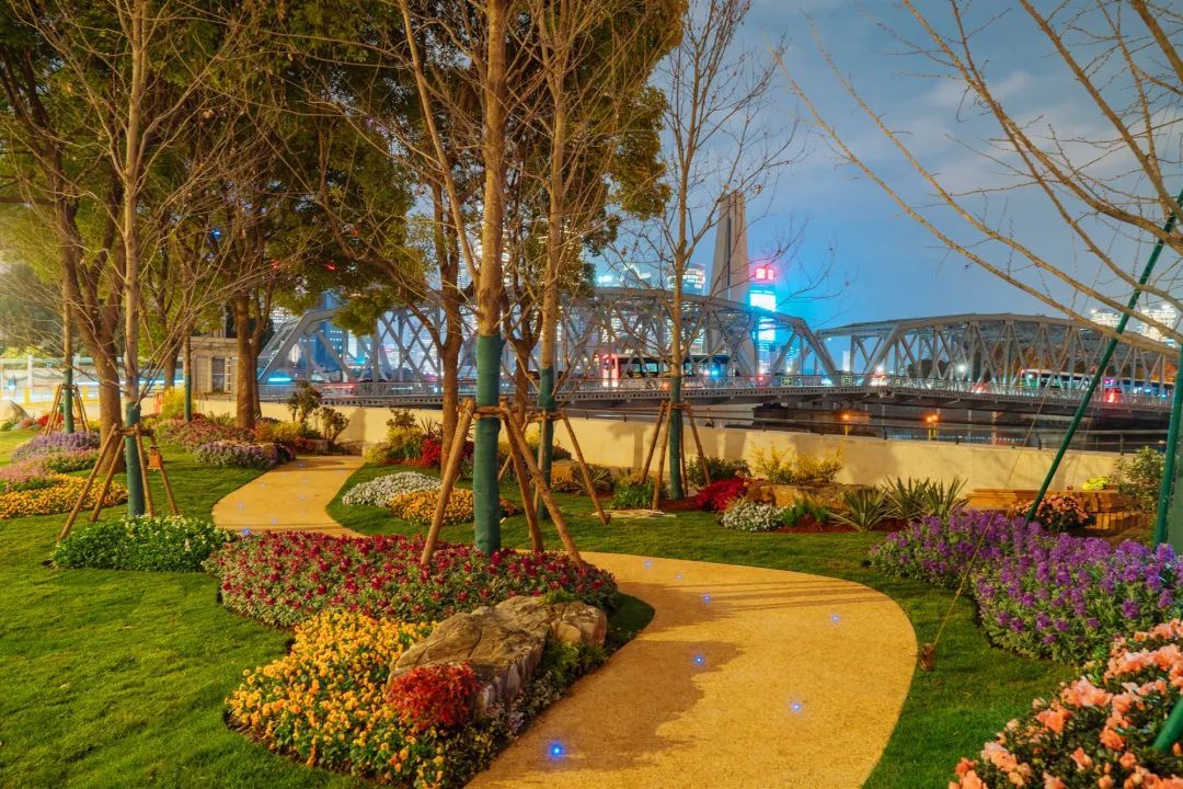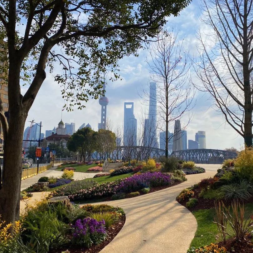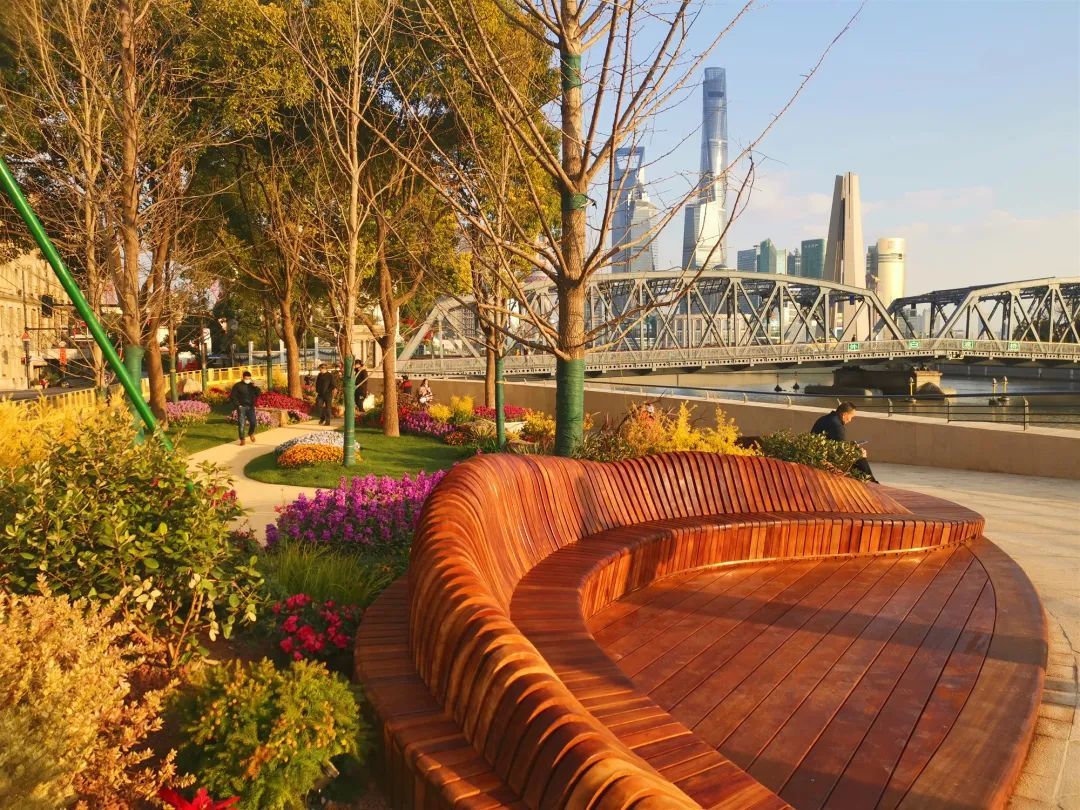 用花园激活北外滩苏河记忆,用高大的乔木形成林荫,用妩媚的海棠寓意美好,用紫罗兰点缀浪漫生活,用沧桑的龟纹石留痕记忆,用花草表达多样的海派文化,营建出“最美河畔会客厅”。后续还会挑选一些最佳摄影点,敬请期待吧~