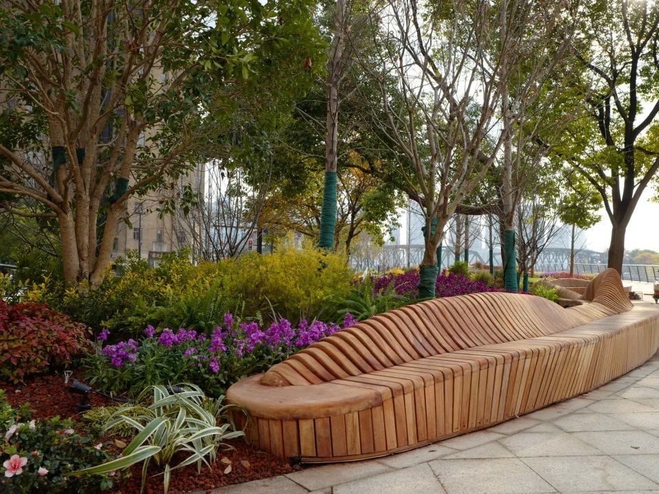 苏州河虹口段滨河绿地改造设计以文化焕新为植入点,以打造“最美会客厅”为目标,结合网红河滨大楼、邮政博物馆、宝丽嘉酒店、外白渡桥等沿线新老建筑,用匠心凝聚助梦想落地,形成统一中求变化的四个花园篇章。
