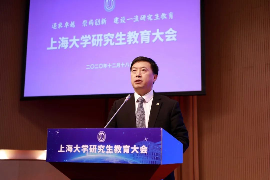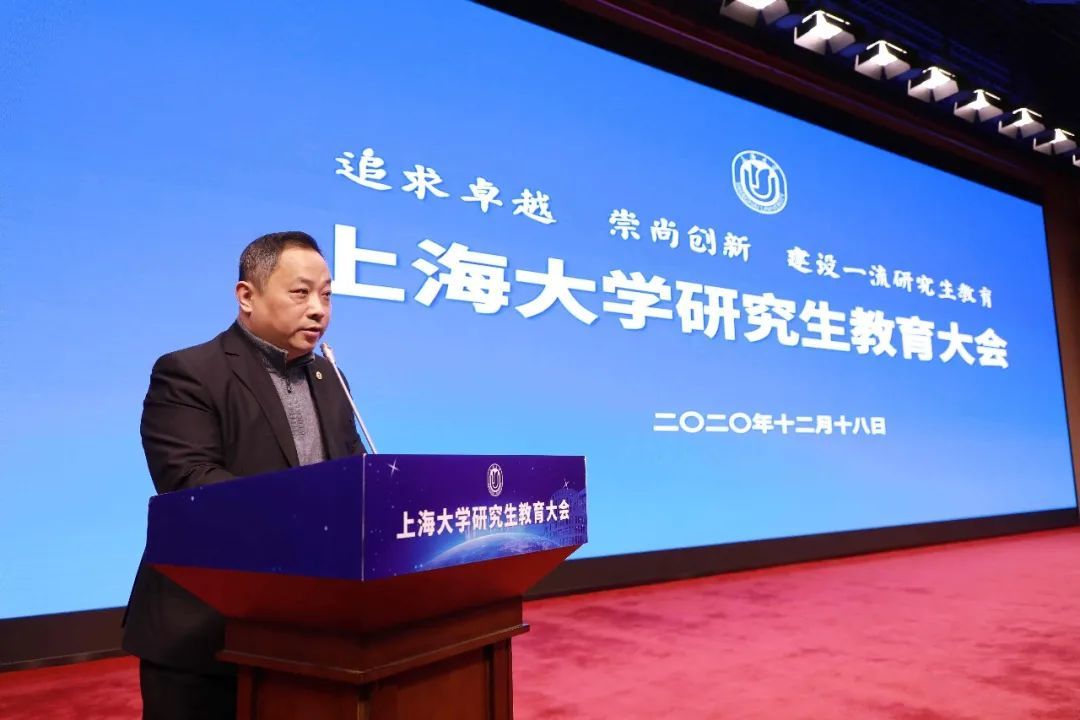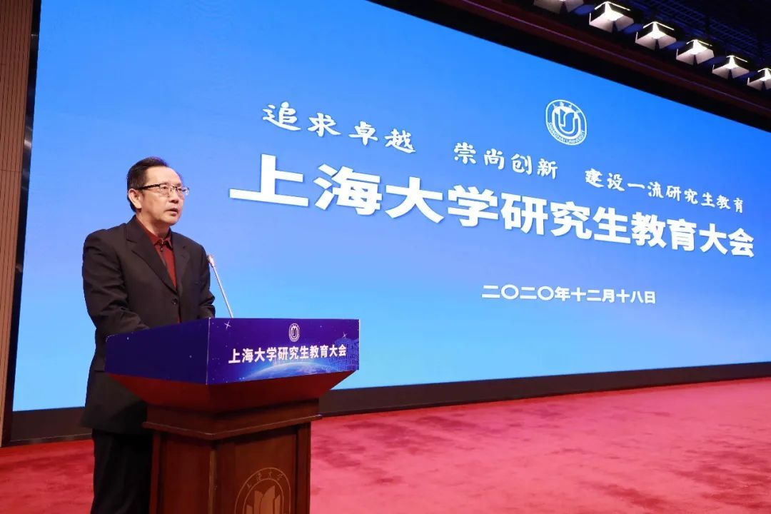 12月18日,上海大学研究生教育大会在校本部图书馆报告厅举行。会议旨在学习贯彻习近平总书记关于研究生教育工作的重要指示,深入贯彻落实党的十九届五中全会和全国研究生教育会议精神。本次大会的主题是:以习近平新时代中国特色社会主义思想为指导,深入落实立德树人根本任务,追求卓越,崇尚创新,加快建设一流研究生教育。校领导成旦红、刘昌胜、龚思怡、欧阳华、聂清、汪小帆、苟燕楠、胡大伟、曹为民、张洁,老领导吴程里、方明伦、罗宏杰、沈学超、龚振邦,中国科学院院士张统一、加拿大国家工程院院士张久俊,上海大学终身教授戴世强,各研究生培养单位和职能部处主要负责人,离退休老同志、导师和学生代表等参加了大会。会议由校党委副书记、副校长龚思怡主持。各学院组织分会场线上观看开幕式。