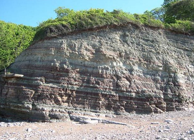 在20世纪90年代的时候,英国的地质学家发现了三叠纪岩石这里面每一层都有着化石夹心,而其中有一层它的化石夹心非常不一样,里面包括但不限于河床和沉积物以及泥煤的痕迹和淤泥。地质学家发现,在美洲,欧洲,非洲,亚洲,甚至在南北极,哪怕是在喜马拉雅山脉都找到了这个特殊的印记。这就意味着的确在某一个年时间段里面,所有的大陆肉眼可见的地方都在下大雨,而且因为历史的原因,因为时间的因素,它们以某种特殊的形式沉积起来了。