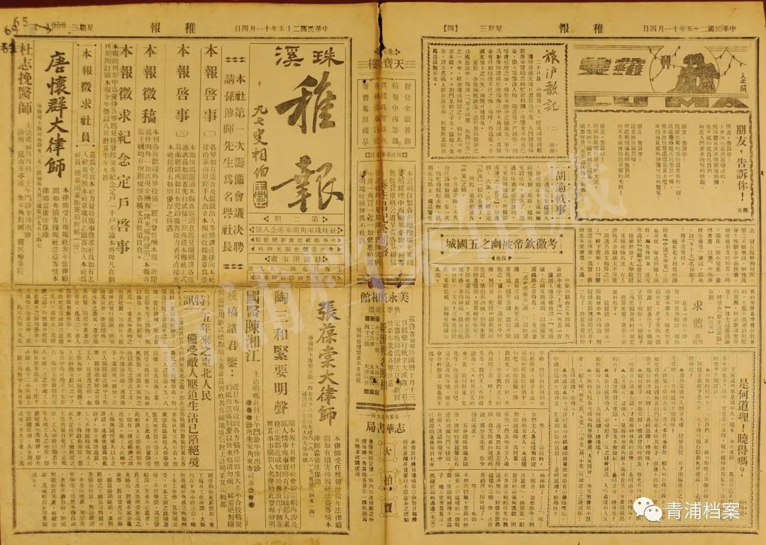青浦老报纸是指青浦解放前(1949年5月前)出版的报纸。从1910年第一张《青浦报》开始到1949年青浦解放,出版达58种老报纸。青浦区档案馆馆藏有30多种老报纸。
