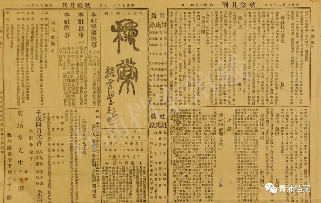 也有部分报纸请本地文人题写的,如朱家角的《漕声》报,“漕声”二字由朱家角继陈莲舫、赖元福之后的一代名医沈庚棠题写。