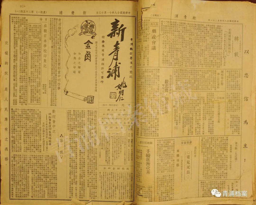 创刊于日伪统治时期的《新青浦》和《青浦新报》,由当时的伪政府青浦县知事姚明仁题写,因为是臭名昭著大汉奸的缘故,看他写的几个字的确乏善可陈,他的署名亦显得有些张牙舞爪,丑态毕露。