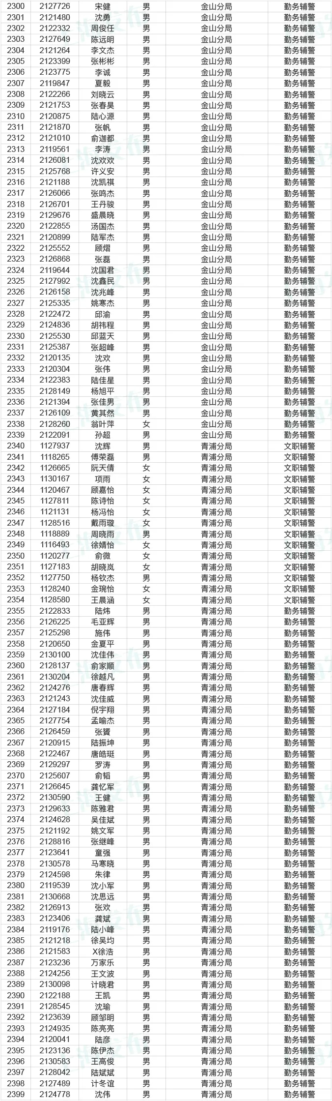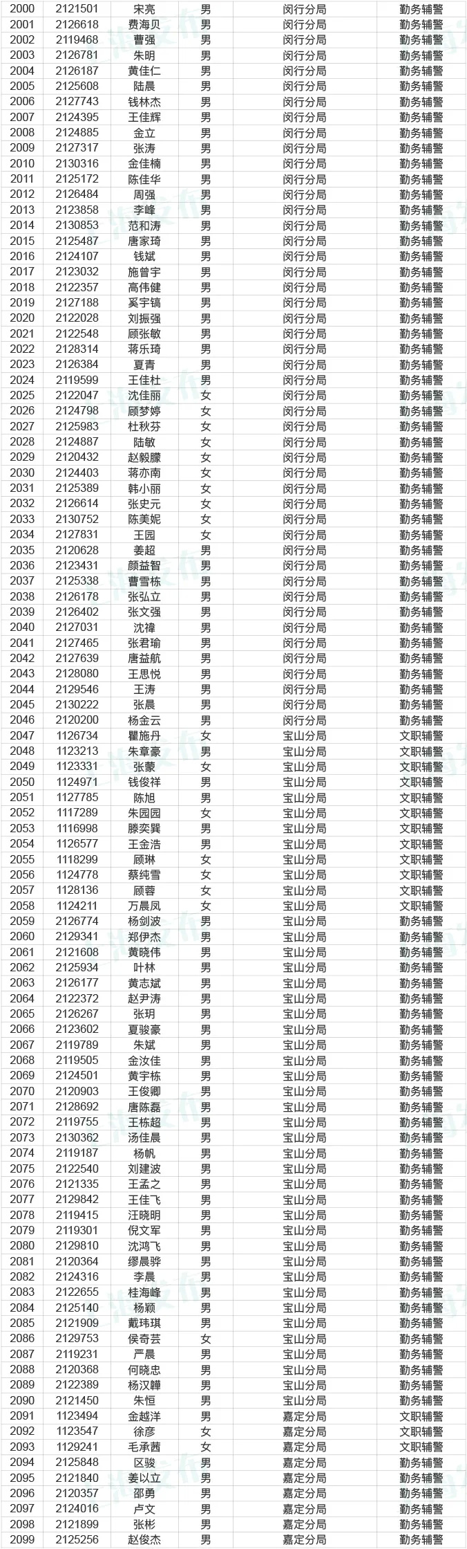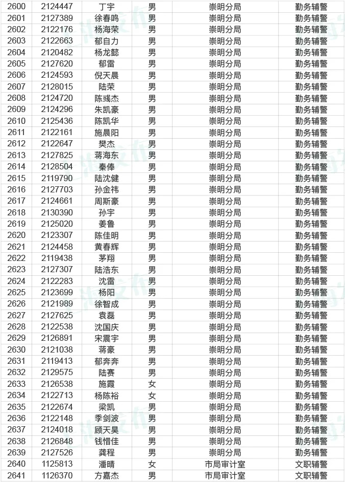 市公务员局说,今天起到12月25日,对2020年上海市公安机关辅警拟聘用人员名单进行公示,共2641人。来看看有没有你身边的小伙伴?