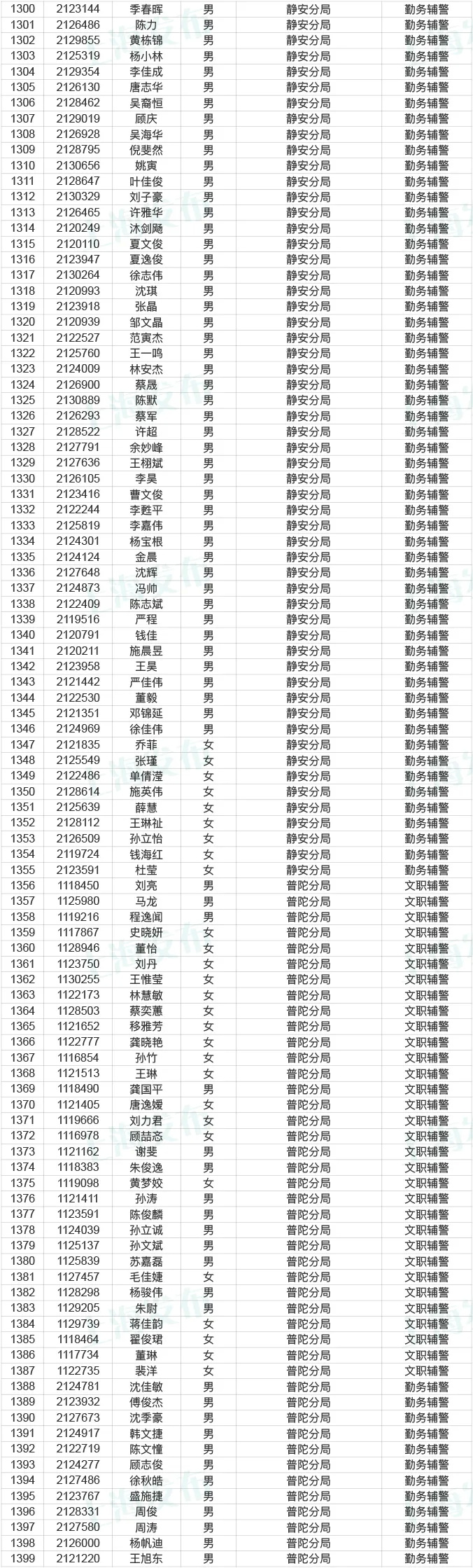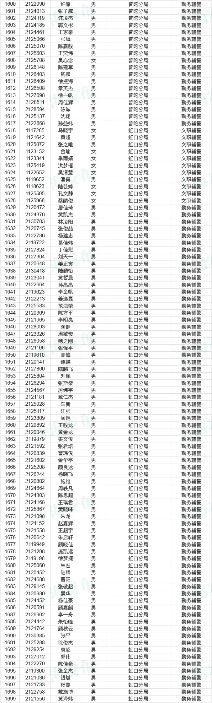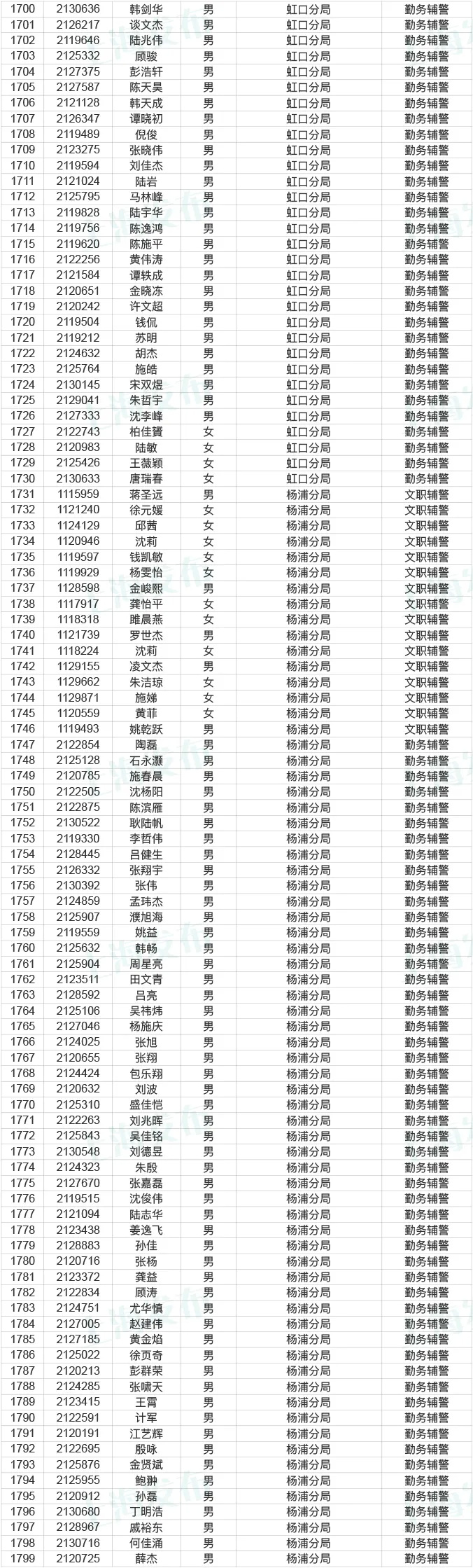 市公务员局说,今天起到12月25日,对2020年上海市公安机关辅警拟聘用人员名单进行公示,共2641人。来看看有没有你身边的小伙伴?