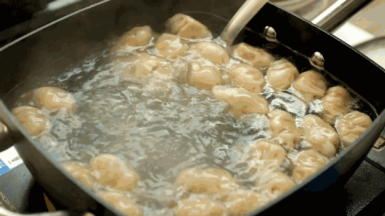 在家自己动手包的饺子,要等水煮开后再下锅,这样做能让饺子皮里的蛋白质迅速凝固成型,淀粉溶于水中,饺子不会粘在一起,方便用勺子搅拌,煮出来的饺子更好吃。
