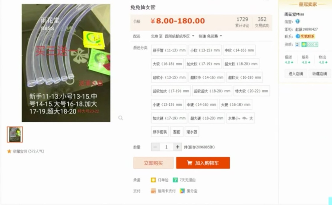 记者在一家售卖催吐管的网店看到,每根塑料管直径从11毫米到22毫米不等,根据型号不同,每根催吐管的价格也不同,从30元到38元左右,此外还有售价130元的新手套装,以及180元的整套。