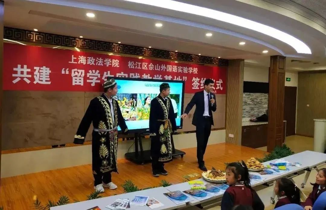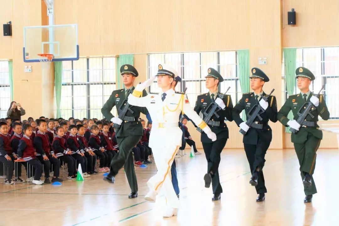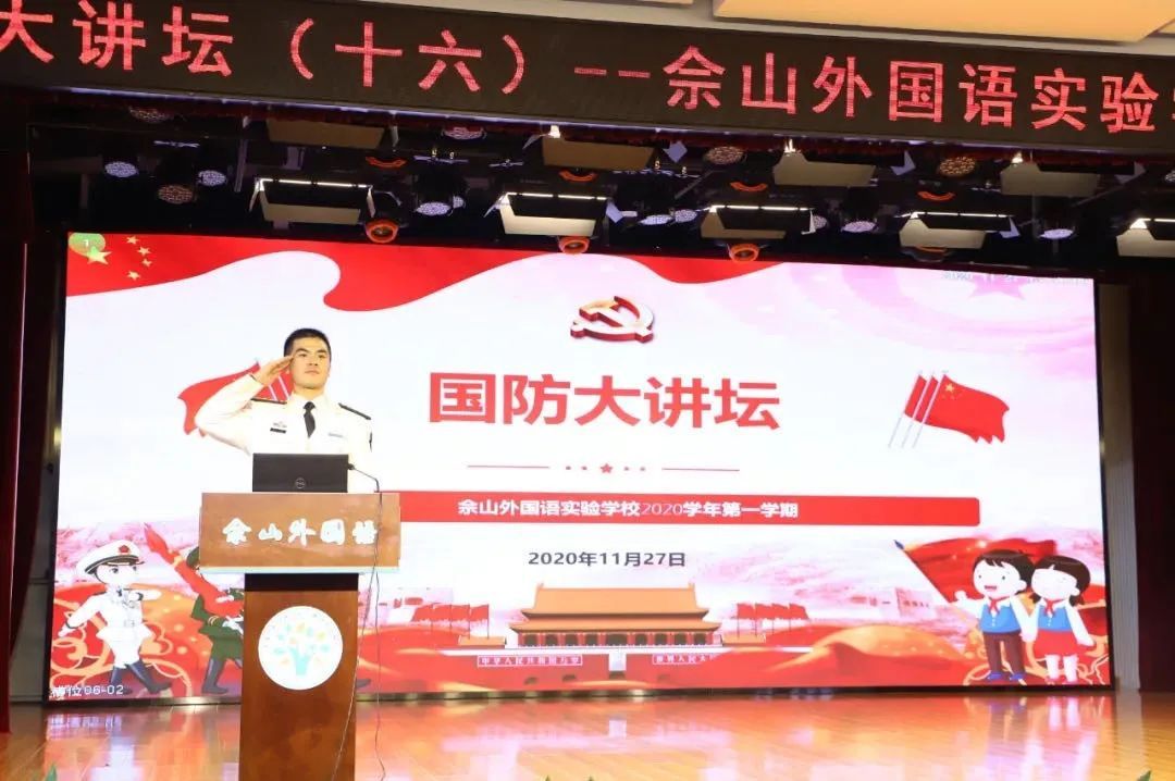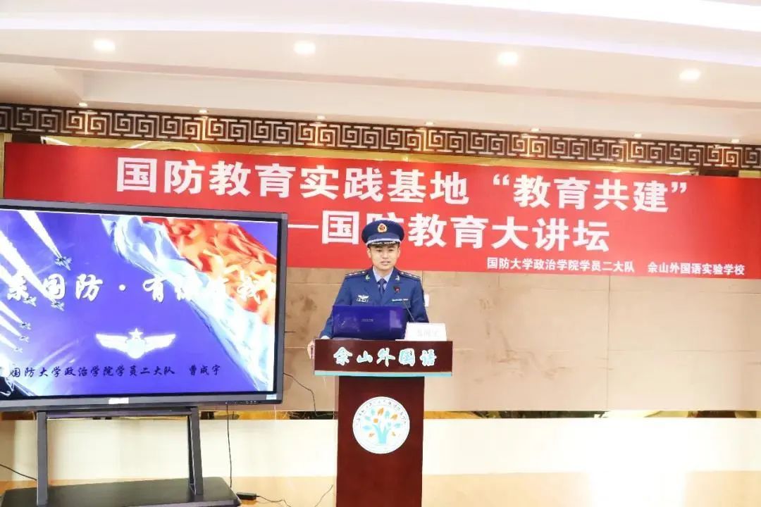 2019年9月21日,学校将一年的国防教育课程总结提炼,开展了以“戎装领巾相辉映,同心同行同筑梦”为主题的国防教育课程区级展示活动,上海市国防教育学会会长孙进少将莅临指导,并为佘外题词:“国防教育铸精神,佘外少年当自强”。2019年12月,我校吴双教师与班级学生在松江区大中小幼思政课一体化建设推进会上的精彩亮相,展示了我校师生的飒爽英姿与英气勃发的精神面貌。