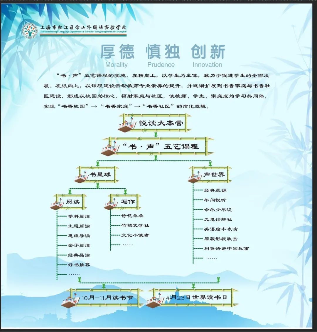 学校地处佘山之北,东佘山有“兰笋山”之称。竹,在中国传统文化中,被誉为君子的化身,“竹”的秉行与学校对学生品质的期待不谋而合,学校把传统的“竹文化”融进德育工作中,增强学生人文底蕴。