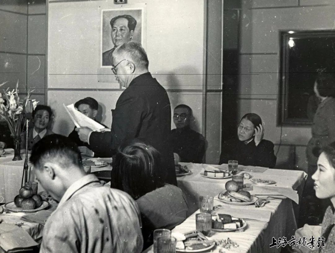 1950年10月上海市第二届第一次人民代表会议广播庆祝会,工商界代表吴蕴初讲话(上海市档案馆藏)