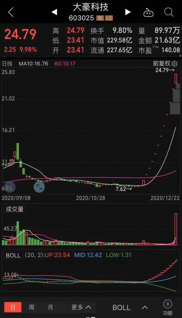 “狂饮”红星二锅头的大豪科技豪取12连板,最新价报24.79元/股,近一个月以来的区间涨幅高达185.3%。