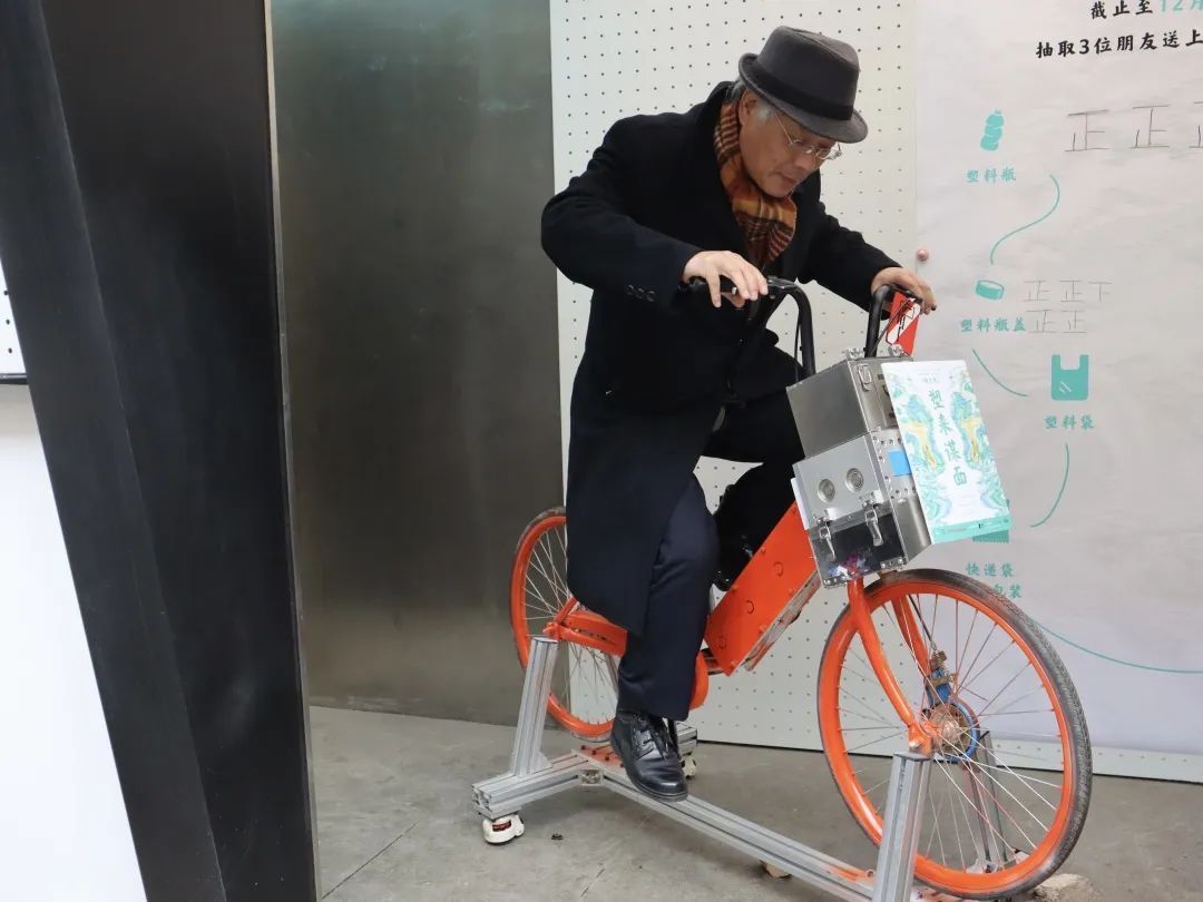 骑着自行车碾碎塑料瓶盖,制成甜甜圈挂饰;拿着塑料袋压成创意的零钱包、手提包...参与活动的市民通过泡沫热压机、动感单车搅碎机和缝纫机,将废弃的塑料制品变废为宝。